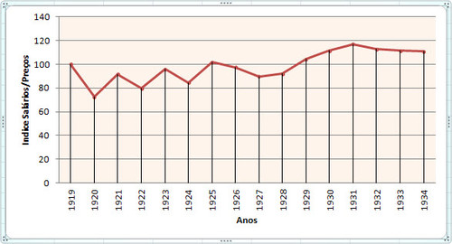 Veja-se o gráfico seguinte do rácio entre o índice de salários e dos preços